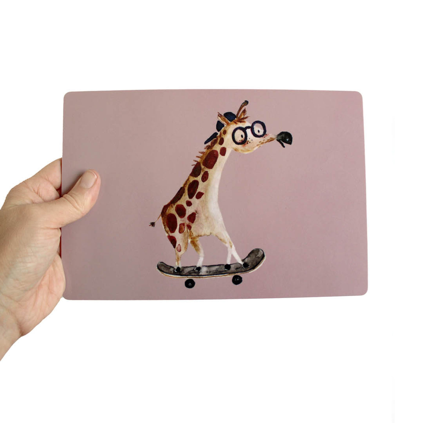 Frühstücksbrettchen Giraffe auf SkateboardFrühstücksbrettchen mit Grid Muster in rose