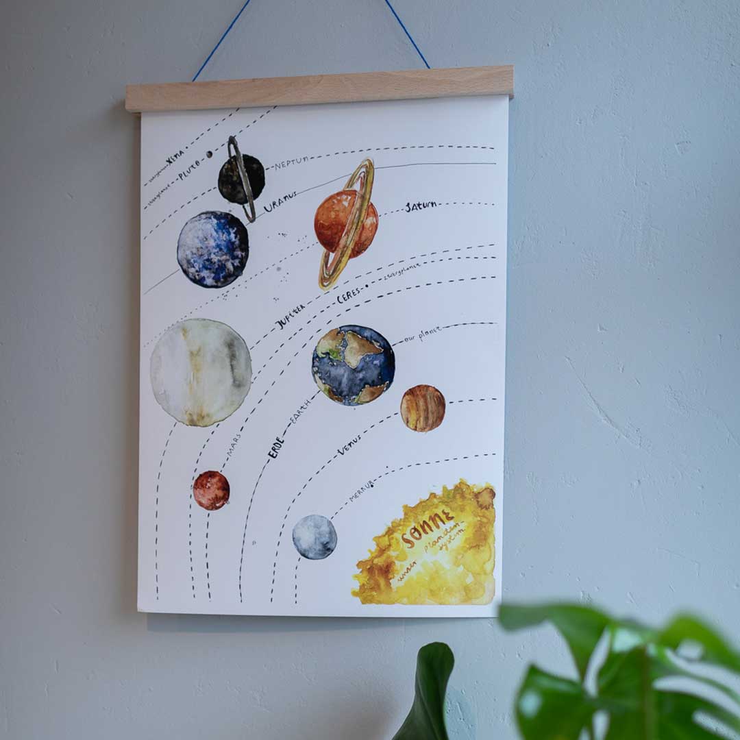 Man lernt nicht für die Schule, sondern fürs Leben. Sagen sie. Wir finden: Man lernt auch nicht nur in der Schule, sondern überall. Also lernen Kinder natürlich auch in ihrem Kinderzimmer... und das noch viel besser, wenn dort nicht nur die Kinder ganz entspannt rumhängen, sondern auch dezente Lernhilfen in Form von Lernpostern. Schließlich sehen unser ABC-Poster, die Zahlen 1-20, das Planetensystem, die Dinoarten, die Vogelarten und die Tiere des Waldes nicht nur toll aus, sie haben echten Mehrwert. Auf dem Zahlenposter darf aktiv gezählt werden. Die Buchstaben prägen sich manchem Kind mit Fortbewegungsmitteln oder Baustellenzubehör als Referenzbildern zum Alphabet einfach besser ein. Und Dinos und Tiere sind ruckzuck auswendig gelernt, wenn du die Namen auf dem Lernposter ein paar mal vorgelesen hast. Bei den Lernpostern geht es uns wie bei unseren Bestsellern, den Bügelflicken und reflektierenden Stickern: Deko mit Funktion ist einfach die beste Deko! Vor allem, wenn dein Kind gar nicht merkt, dass das Produkt mehr als einfach nur cool ist.