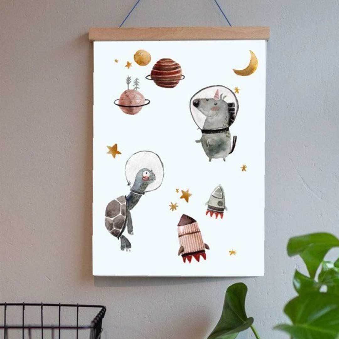 Kinder treiben es gern bunt – und oft werden sowohl Eltern als auch Kinder noch zusätzlich von den schrillen Farben zahlreicher Kinderartikel geradezu erschlagen. Bedenkt man dann noch, dass das Kinderzimmer auch ein Schlafzimmer ist, stellen sich schon so einige Fragen dazu, wie das ideale Poster fürs Kinderzimmer aussehen sollte. Wir bei halfbird beantworten die Frage natürlich nach eigenem Geschmack und ziemlich aus dem Bauch heraus, finden aber, Kinderposter brauchen auf jeden Fall Farbe. Nein: Farben! Mehrzahl. Vielzahl. Denn puderrosa oder babyblau nach Geschlechterklischee? Oder beige-grau-schwarz-weiß nach erwachsenen Designvorlieben? Solche Kinderposter müsstest du woanders kaufen. Bei halfbird reist die Fantasie auf den Farben des Regenbogens und mit fröhlichem Aquarell-Pinselstrich. Damit die handillustrierten Motive neben Lebhaftigkeit auch Ruhe ausstrahlen, ist der Druck angenehm matt und das verwendete Recyclingpapier ist weiß, ohne dabei zu grell zu sein. Zudem sind viele Poster fürs Kinderzimmer auch in kleinen Größen erhältlich. So sind über Vögel und Waldtiere bis hin zu Walen und Dinosauriern jede Menge Illustrationen und Motive entstanden, die Kindern und Eltern gleichermaßen gefallen und die sowohl zum Spielen, zu Geschichten und Gesprächen anregen als auch zum abendlichen Hineinträumen.