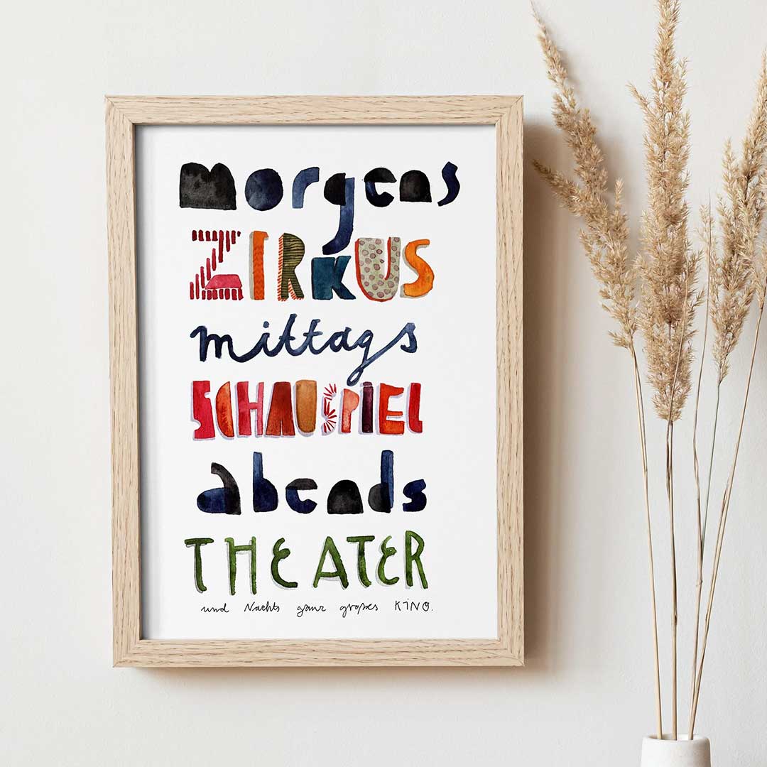 Falls dich unsere Sprüche-Poster bzw. Poster-Sprüche so abholen, dass du die Stadt damit plakatieren könntest, dann feiern wir das! Die Poster selbst gibt es aber trotzdem in eher kleinen Formaten zu kaufen. Warum? Zum einen natürlich vielleicht ein klitzekleines Bisschen aus Eigennutz – so hast du einfach mehr Platz an der Wand für mehr halfbird-Poster (Dinos, Zahlen, Baustellen-ABC, anyone?). Außerdem können wir durch kleine Formate und Größen auch besonders günstige Preise anbieten. Aber der Hauptgrund ist natürlich ein echter halfbird-Klassiker: Eigensinn! Weil das selber Entdecken von Dingen, die dir nicht ins Gesicht springen, einfach bessere Laune macht. Tipp: Geh doch mal ganz nah an unseren Kunstdruck „Morgens Zirkus”... Klein ist nämlich nicht nur oho: Klein ist manchmal auch ganz großes Kino!