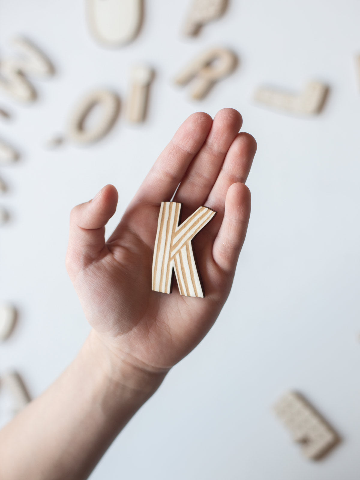Holzbuchstabe K fürs Kinderzimmer mit Muster schlicht